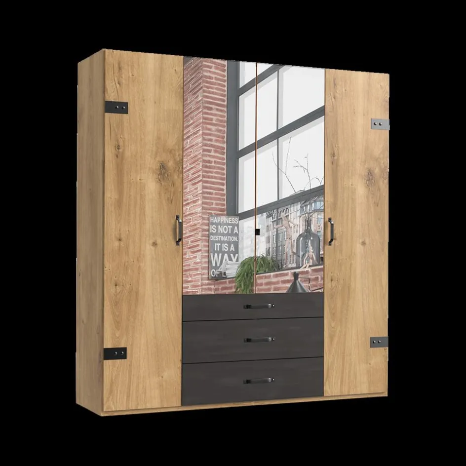 Draaideurkasten|Ygo Kleerkast KICK Plankeneiche/Raw Steel B200