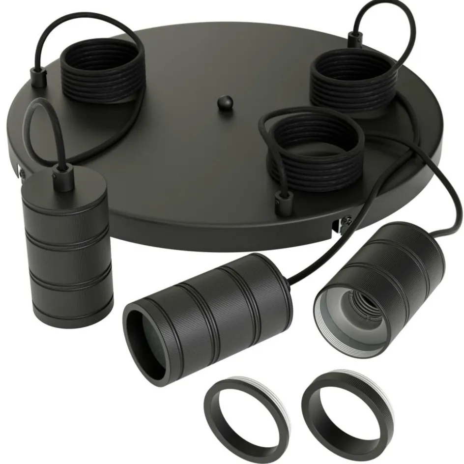 Hanglampen|Ygo Pendel RETRO Rond 3D. Plafondplaat Zwart