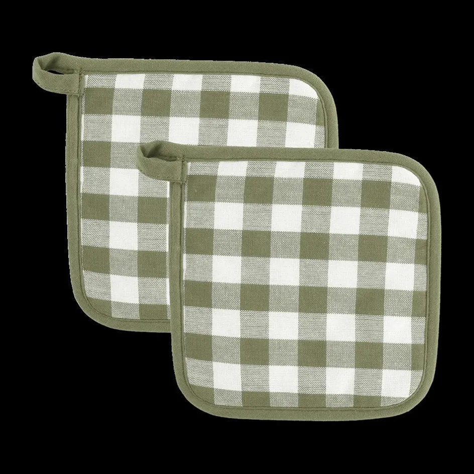 Keukenlinnen|Ygo Pannenlap S/2 GINSHA Ruit Olijfgroen