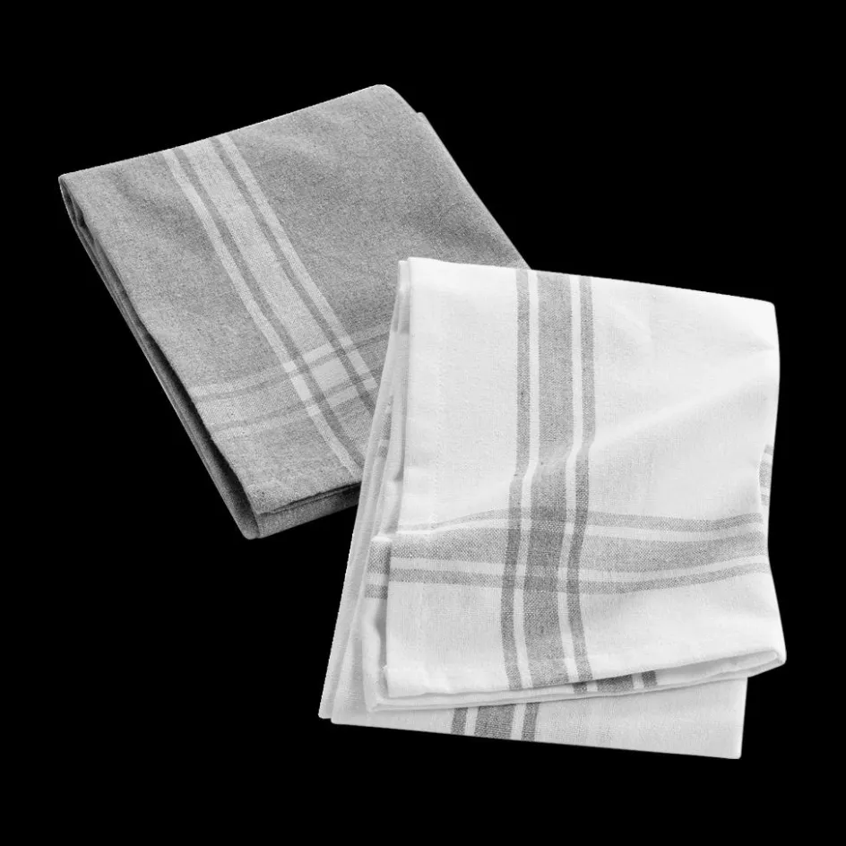 Keukenlinnen|Ygo S/2 Keukenhanddoek TORCHA Katoen Wit/Grijs