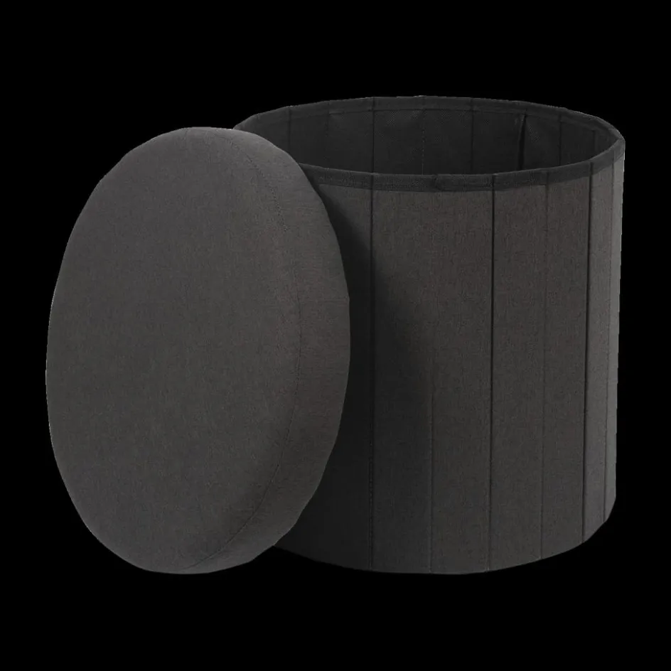 Opbergboxen|Decoratieve Opbergers|Ygo Opbergpouf DOAKA Rond Zwart