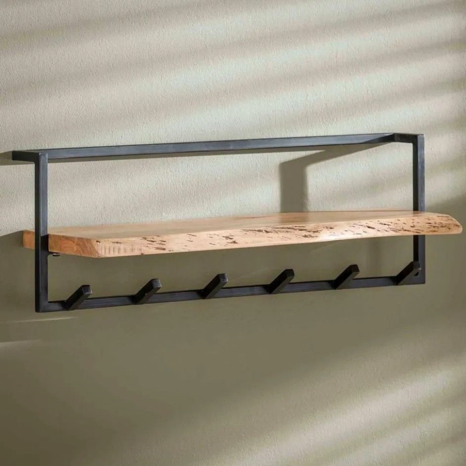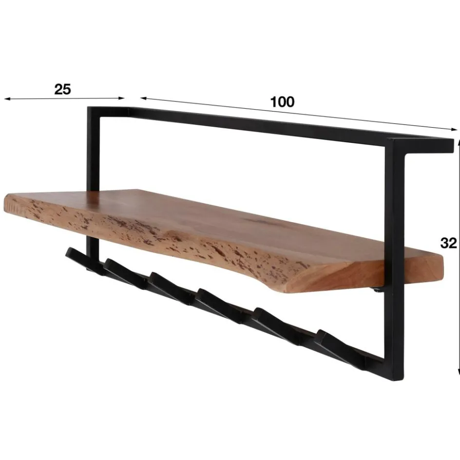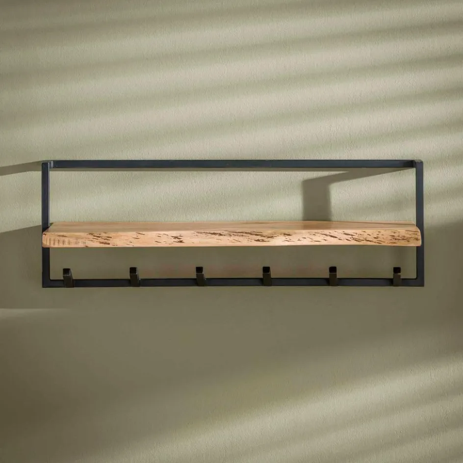 Opbergen|Ygo Kapstok 6 haken met plank, massief accacia naturel
