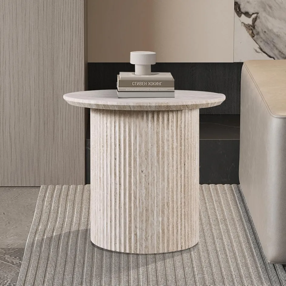 Salontafels & Bijzettafels|Ygo Salontafel PORTO Ø50 Travertijnlook