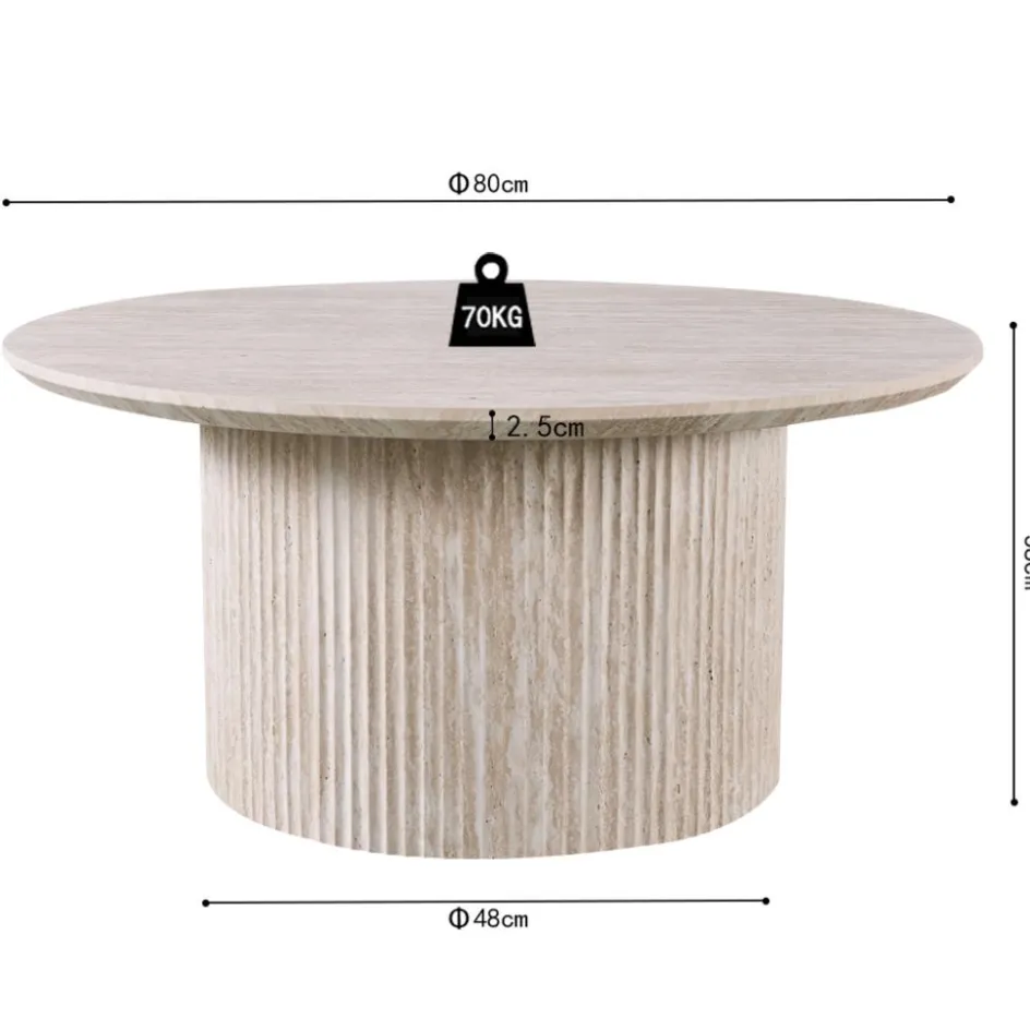 Salontafels & Bijzettafels|Ygo Salontafel PORTO Ø80 Travertijnlook