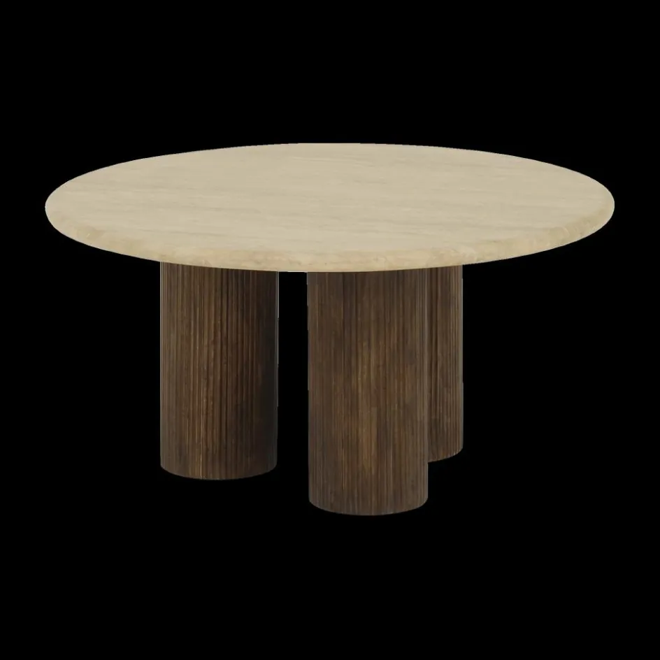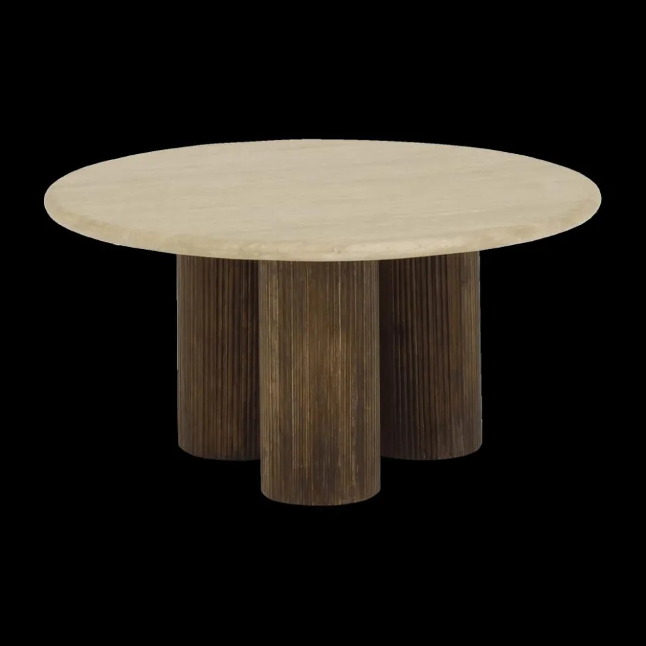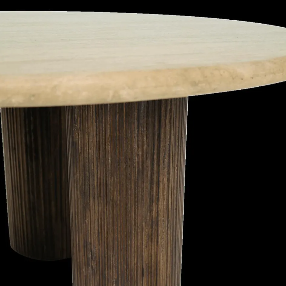 Salontafels & Bijzettafels|Ygo Salontafel PURNIMA Ø90 Travertijn/Mango Donkerbruin