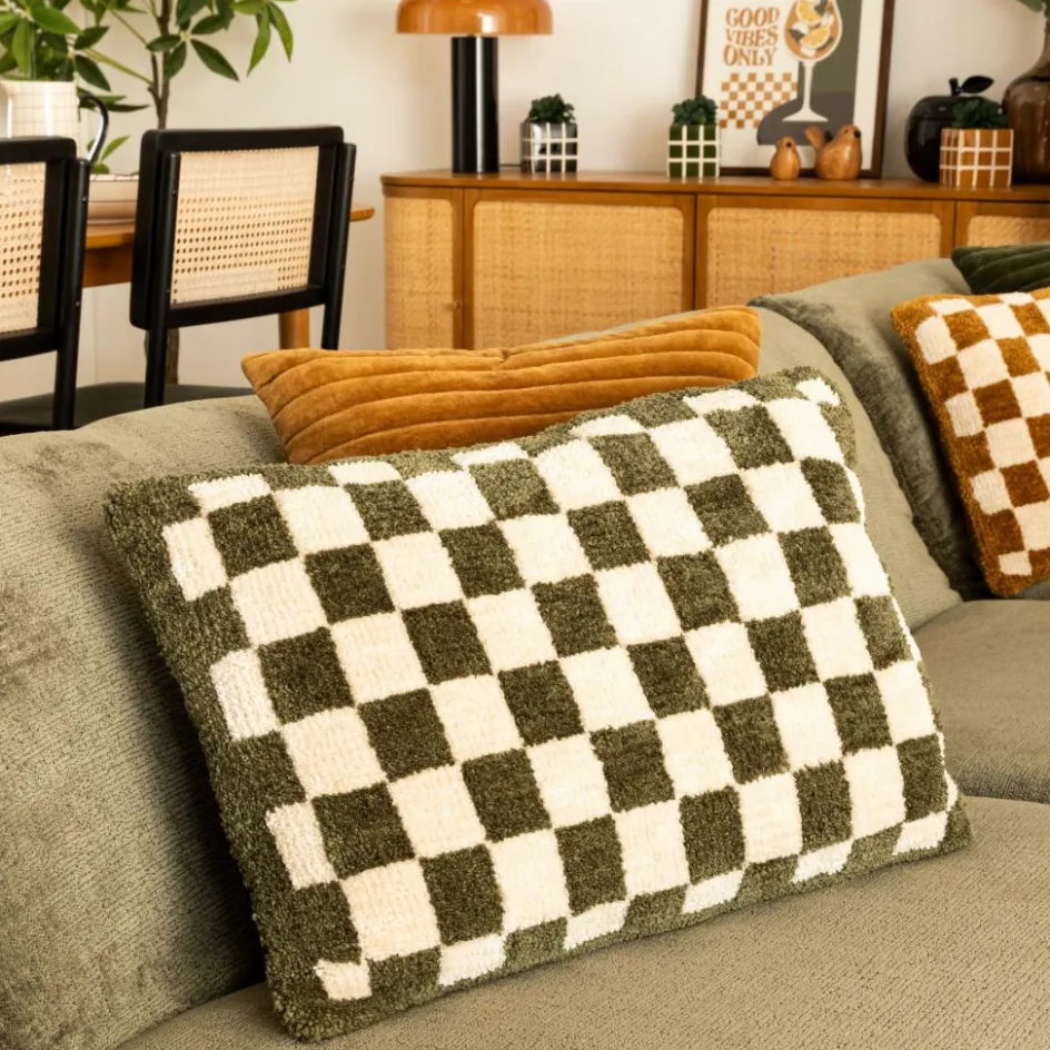 Sierkussens & Plaids|Ygo Kussen DAMDRO Dambordmotief Groen