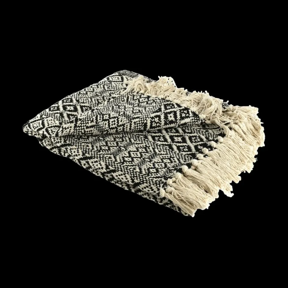 Sierkussens & Plaids|Ygo Plaid FRANGE Kat. Ecru/Zwart