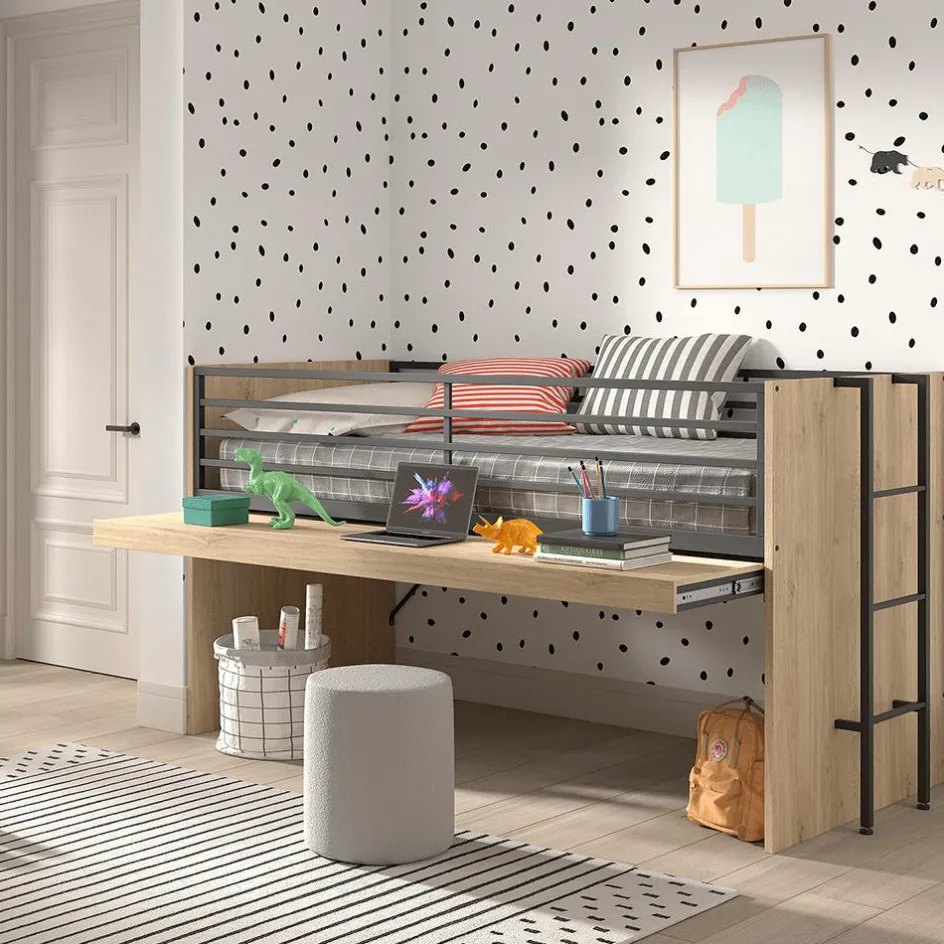 Slaapkamer|Bedden|Ygo Hoogslaper DIEWKE Uitschuifbaar Bureau Eik 90×200