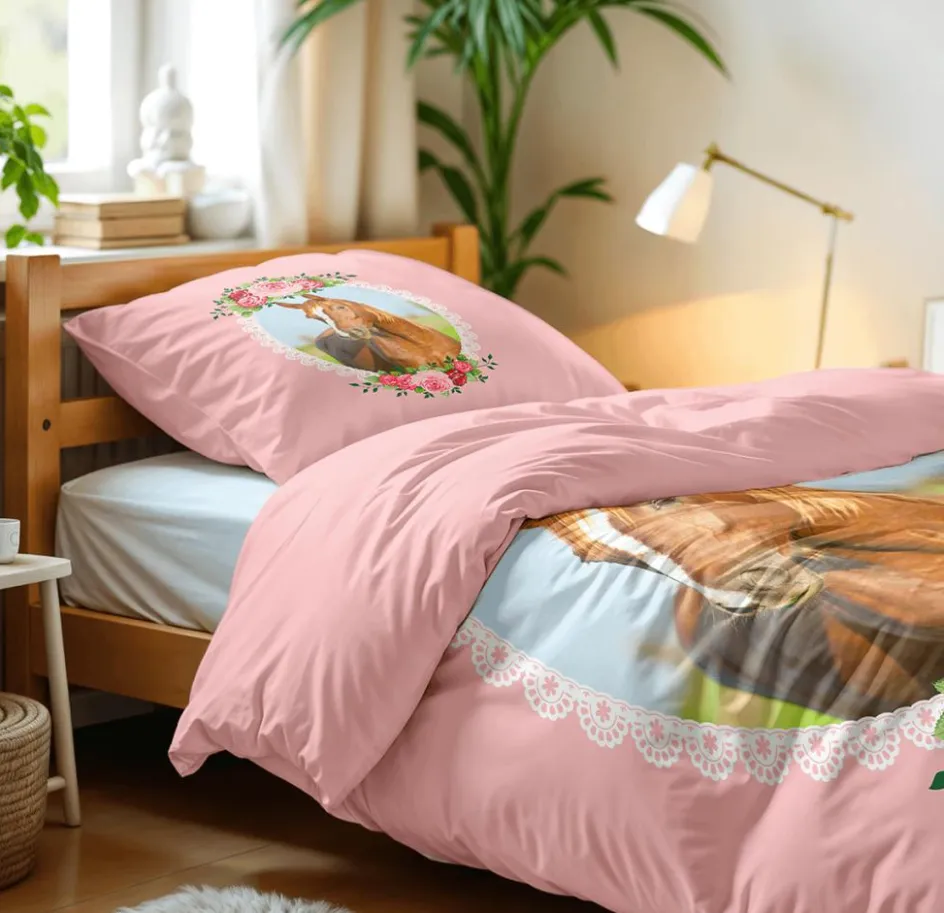 Slaapkamer|Kinderdekbedovertrekken|Ygo Dekbedovertrek CUTE HORSE 140 Roze
