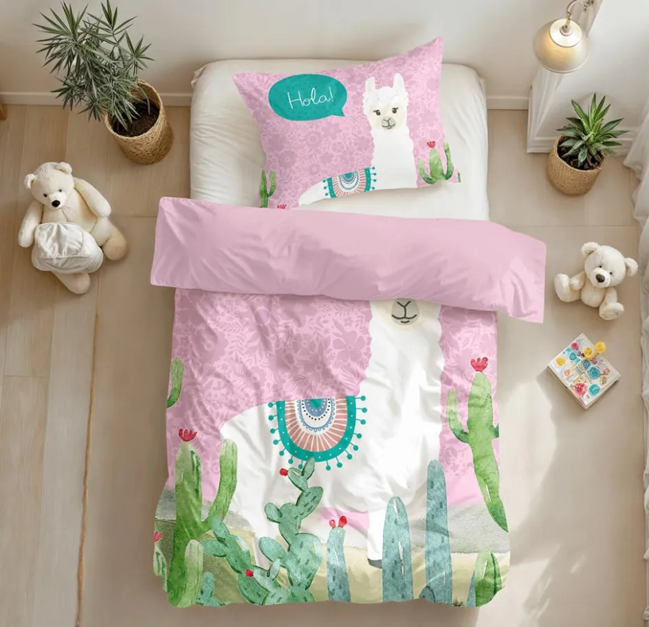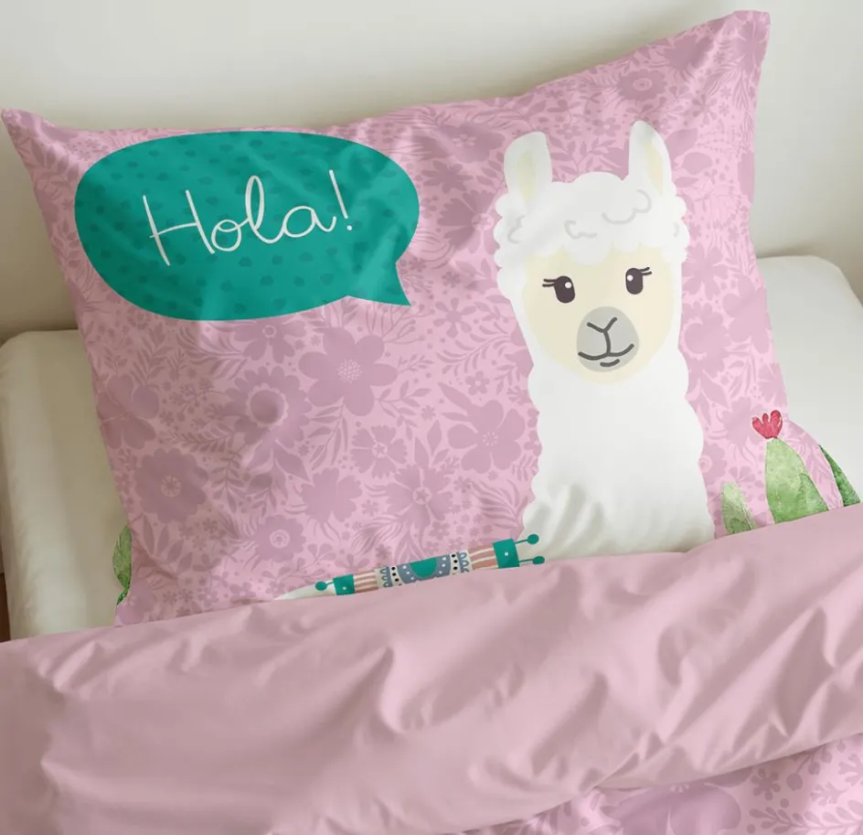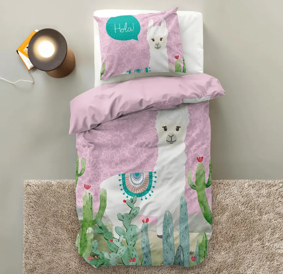Slaapkamer|Kinderdekbedovertrekken|Ygo Dekbedovertrek HOLA LAMA 140 Roze