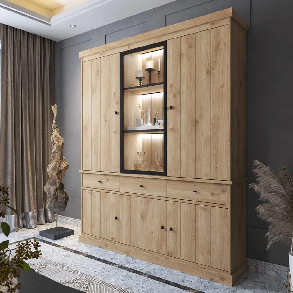 Vitrinekasten|Ygo Vitrinekast CASTELLO B182 Lichte Eik