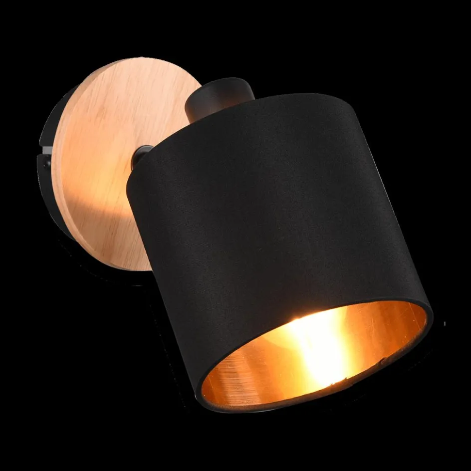 Wandlampen|Ygo Spot TOMMY 1Del. Met./Hout Mat Zwart