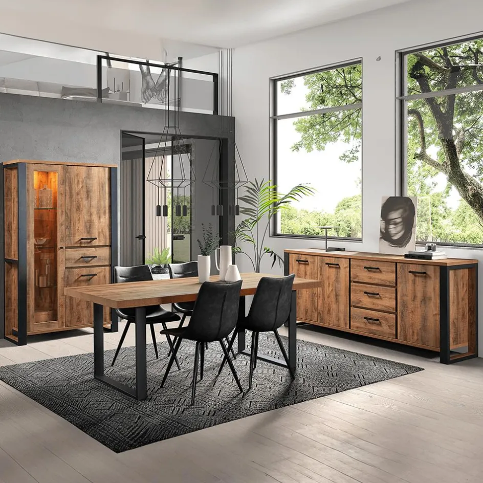 Woon- En Eetkamers|Ygo Eetkamer MADAGASCAR: Dressoir + Glaskast + Tafel 200×100 + 4 stoelen LORRY Zwart