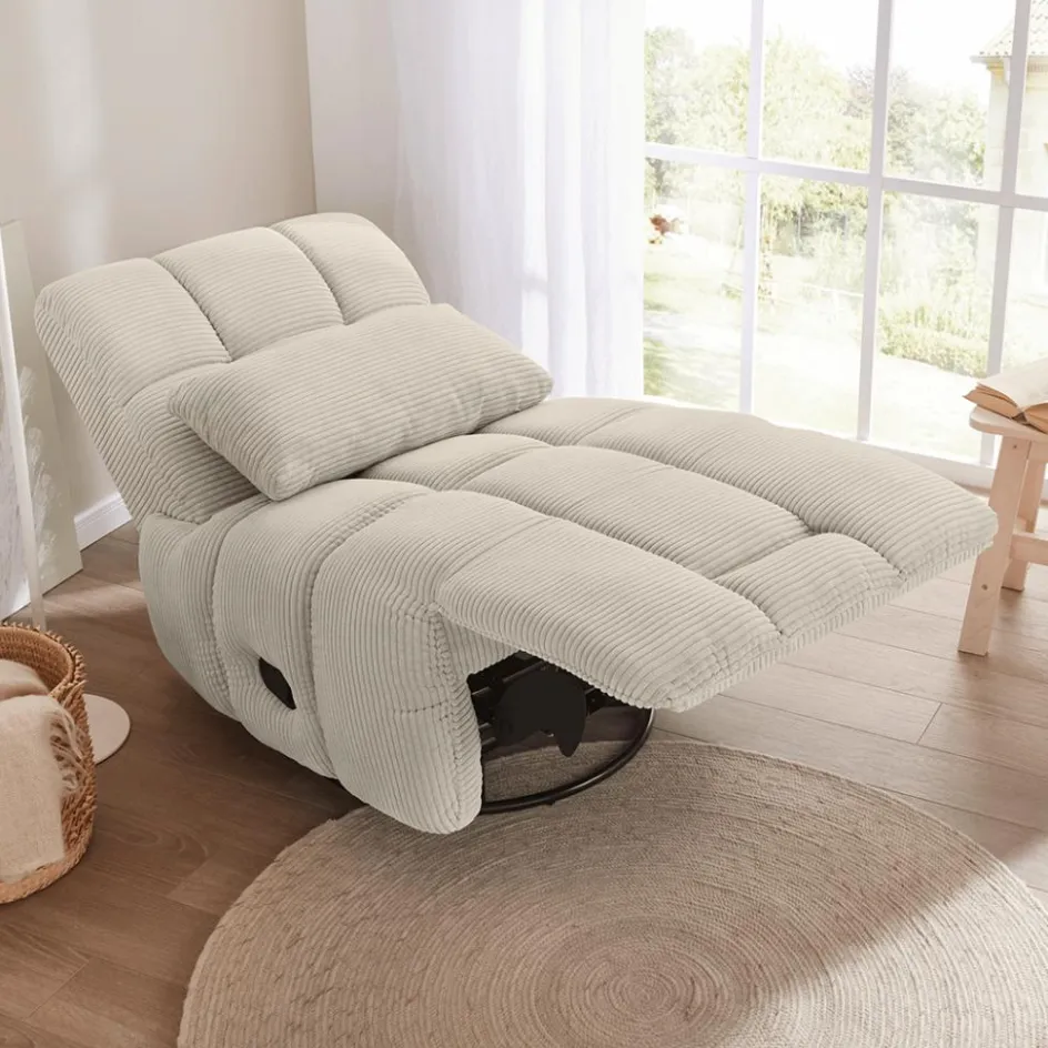 Fauteuils|Ygo Relaxfauteuil RONALDO Ribfluweel Greige