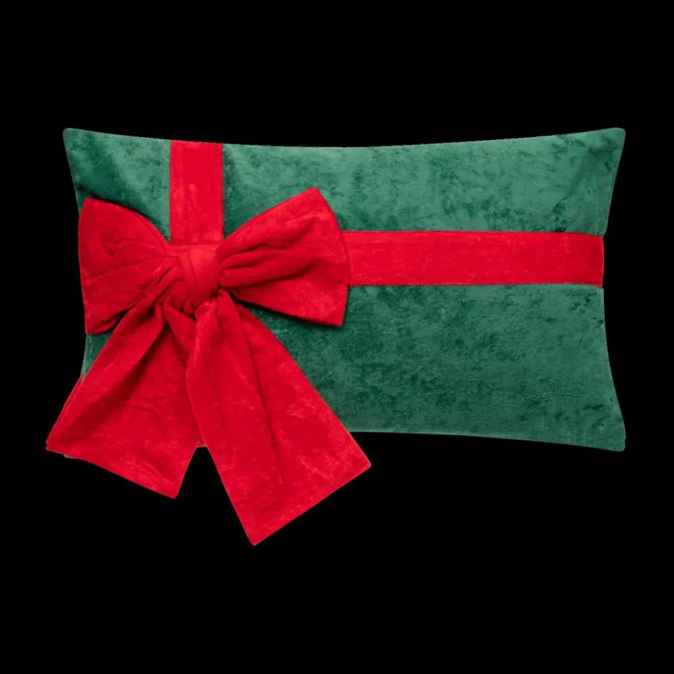 Kerst|Ygo Kussen GIFTY Groen met Strik Rood