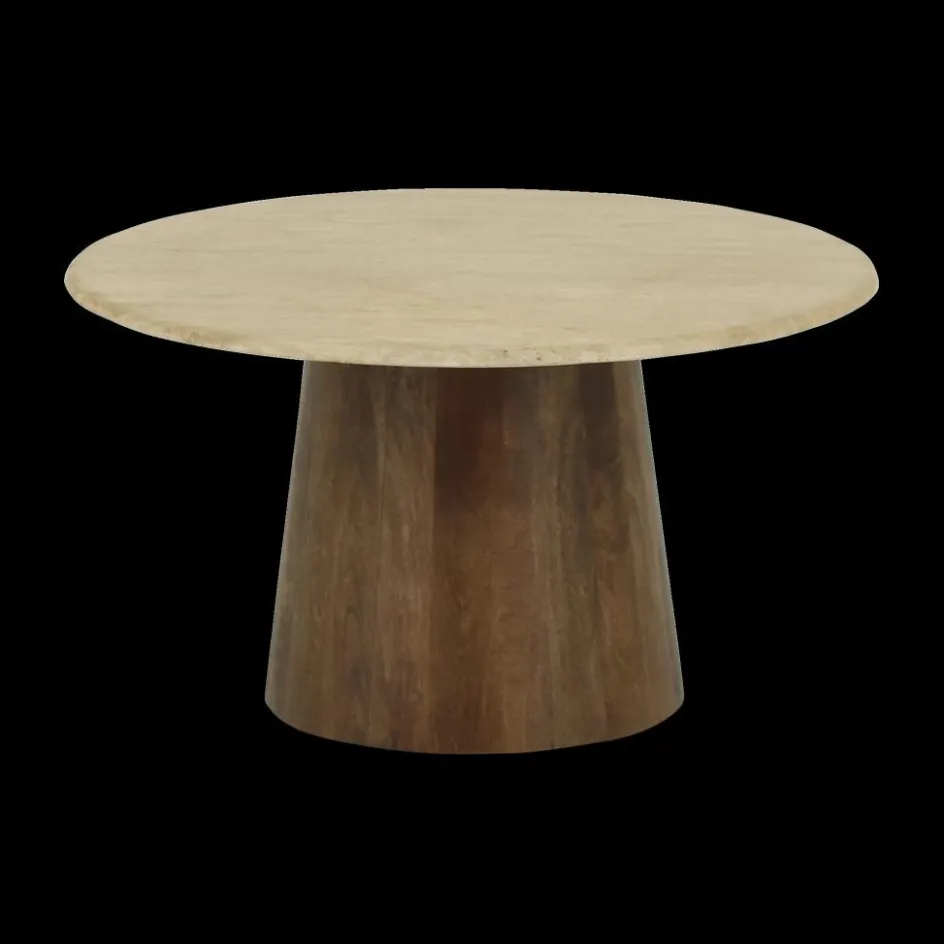 Salontafels & Bijzettafels|Ygo Salontafel ANANTA Ø80 Travertin/Mango Donkerbruin