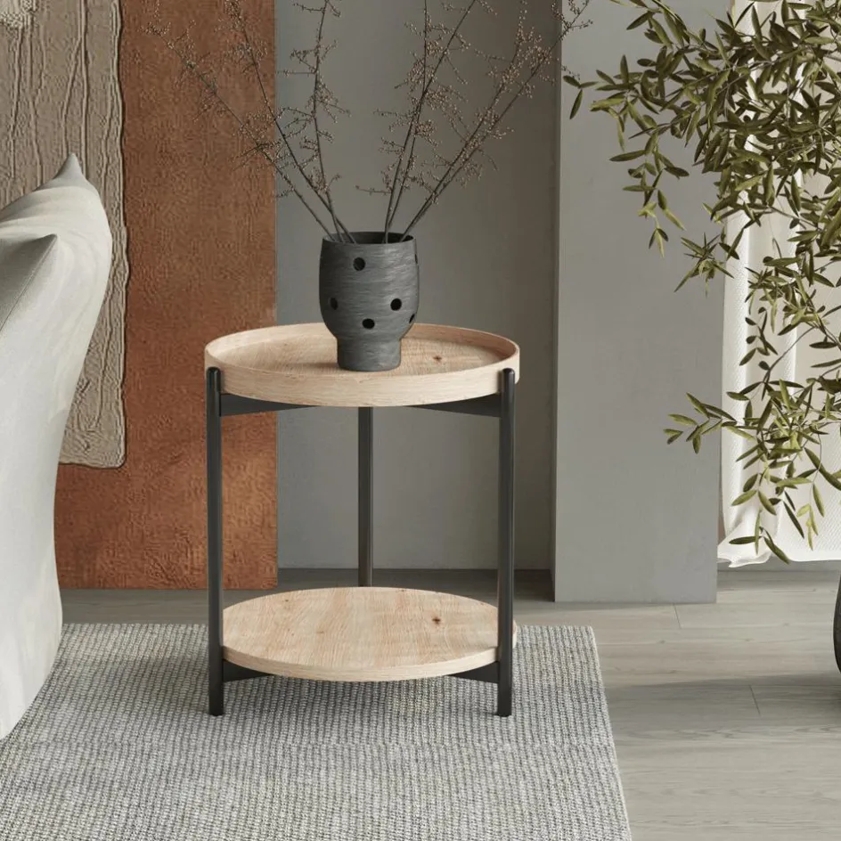 Salontafels & Bijzettafels|Ygo Salontafel JACOB Ø45 M/Onderblad Oude Eik