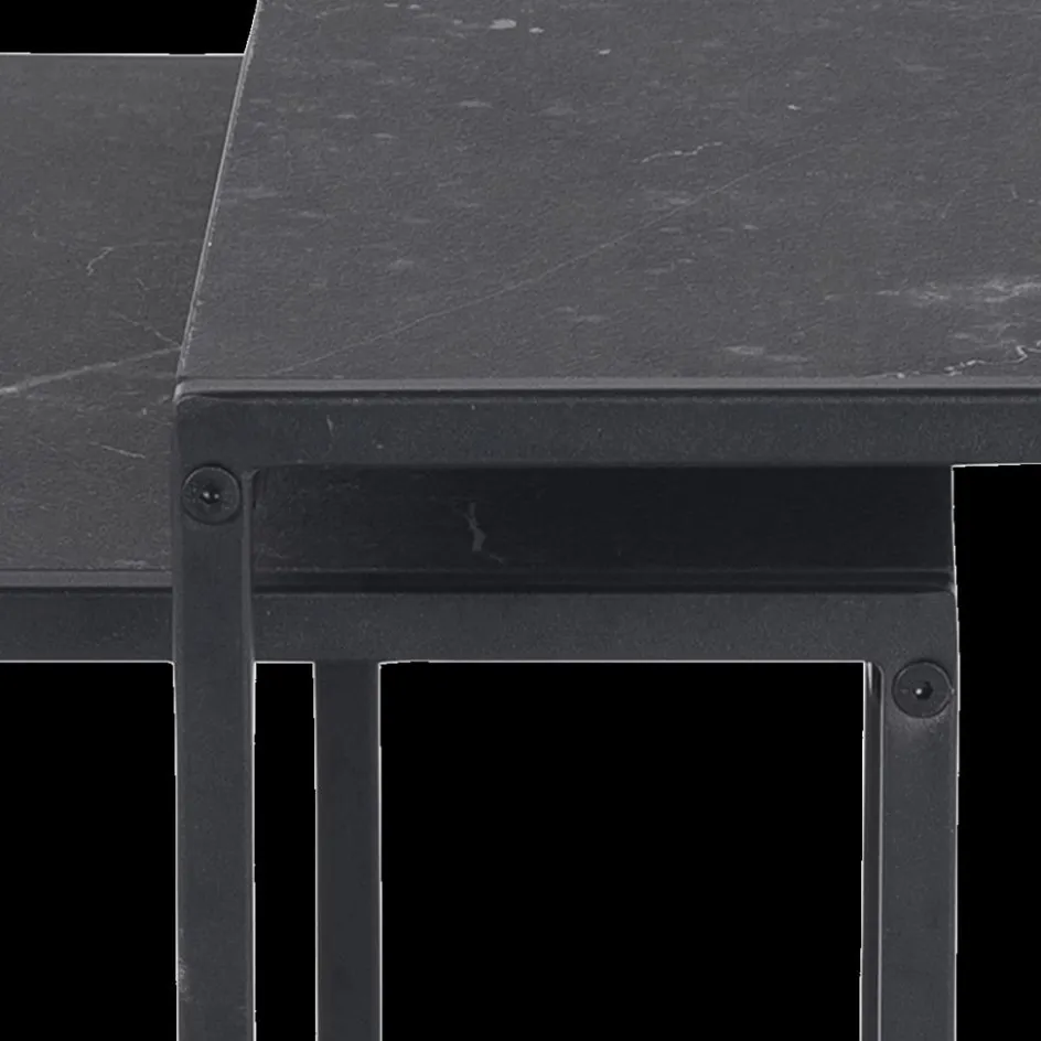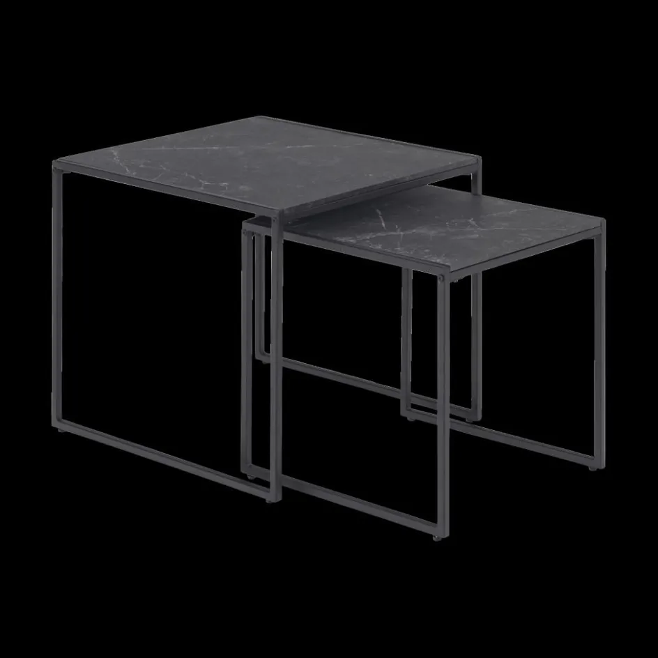 Salontafels & Bijzettafels|Ygo Salontafel Set van 2 RADDEL Mel. Marble/Metal Black