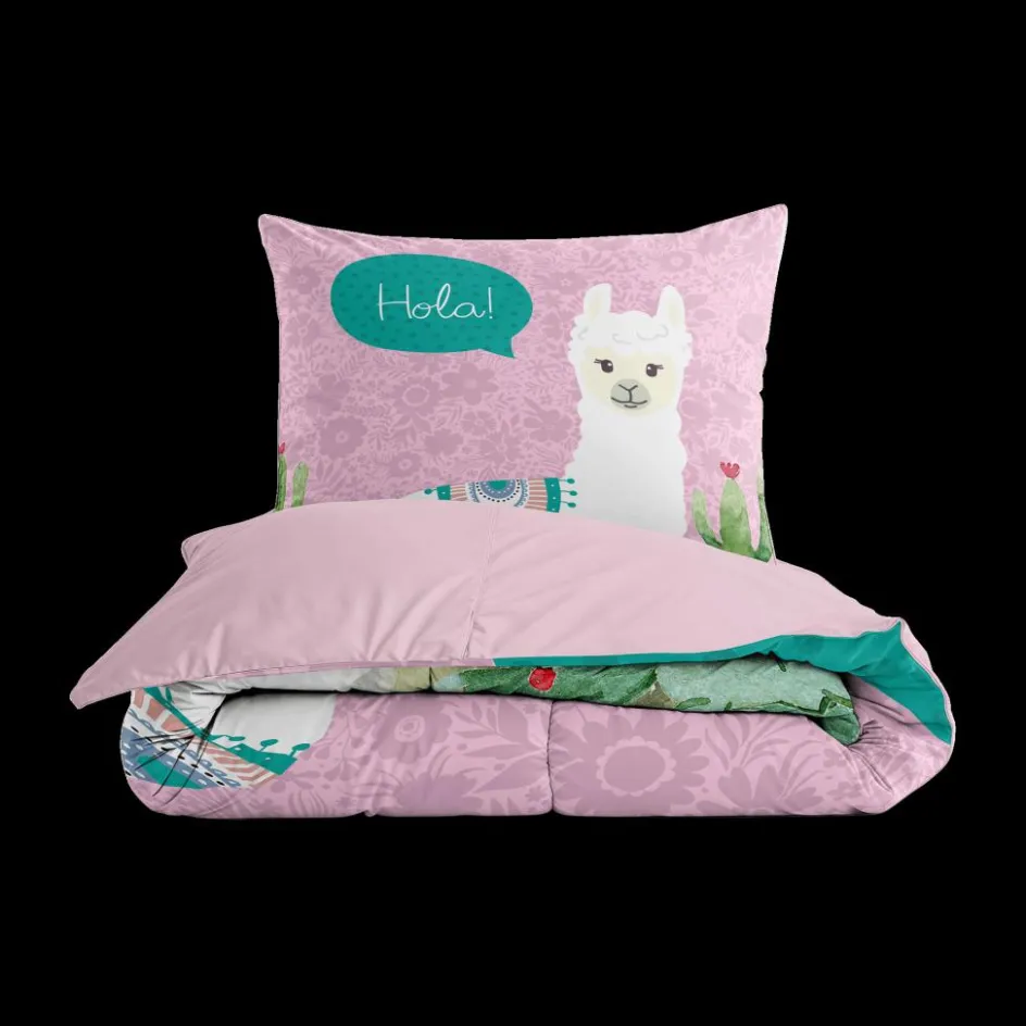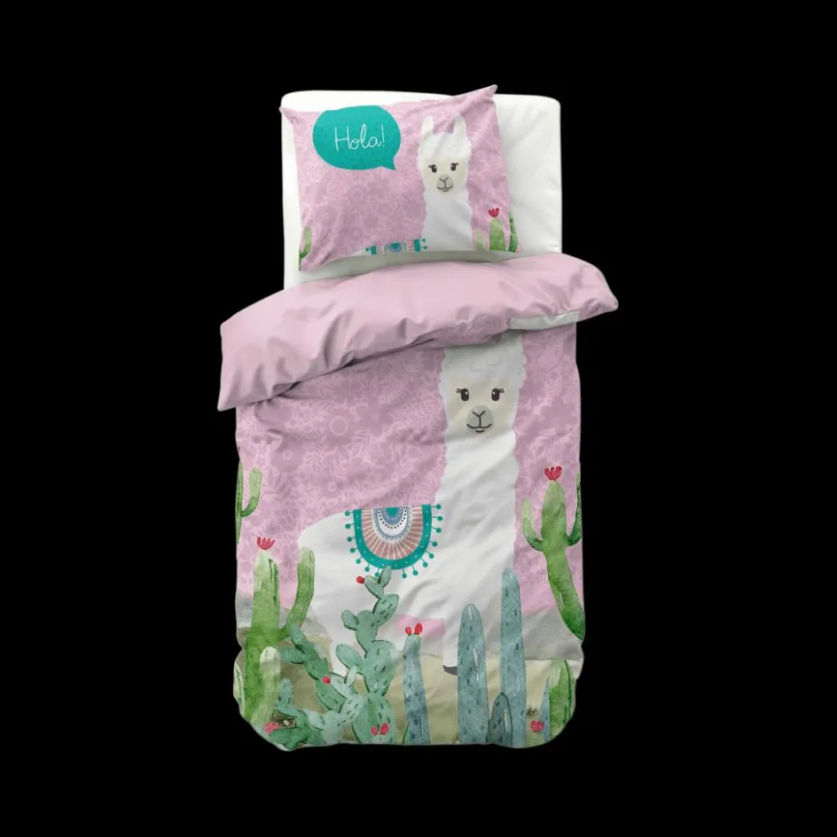 Slaapkamer|Kinderdekbedovertrekken|Ygo Dekbedovertrek HOLA LAMA 140 Roze