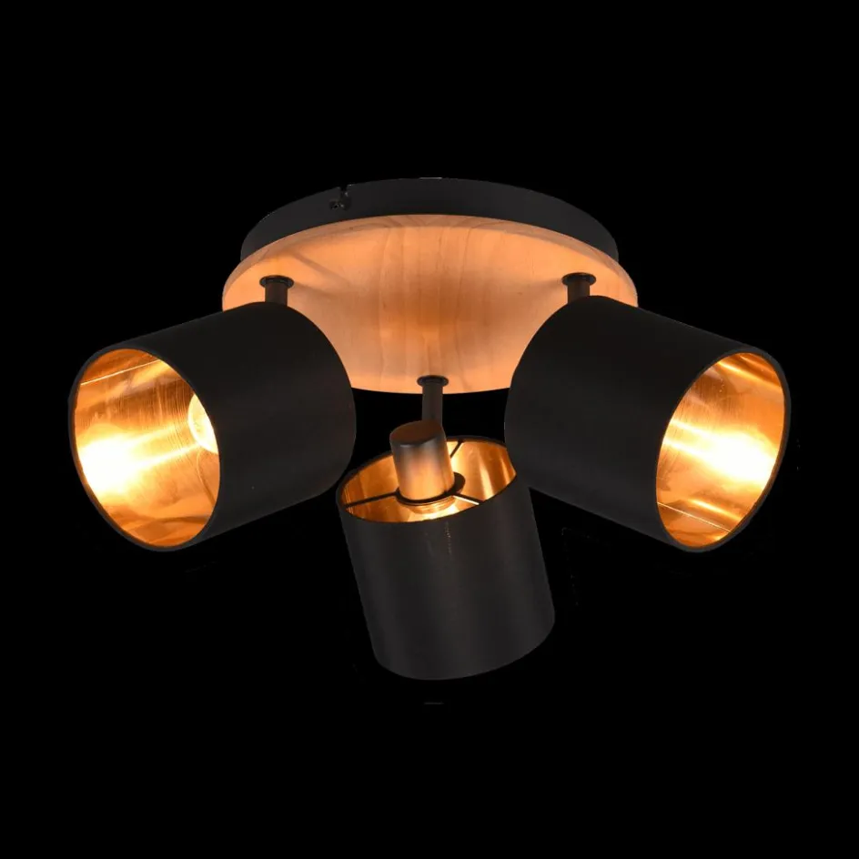 Spots|Ygo Spot TOMMY 3Del. Rnd Met./Hout Mat Zwart