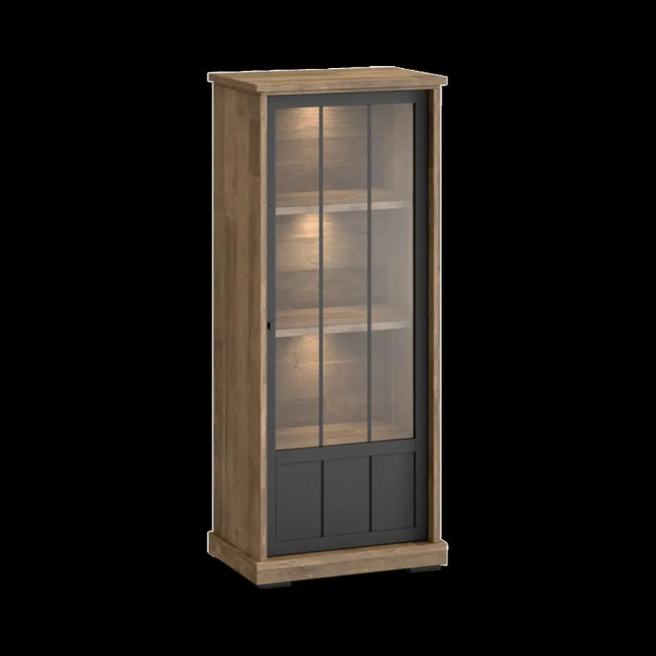 Vitrinekasten|Ygo Barkast TOLUCA Old teak/Zwart Rechts B77