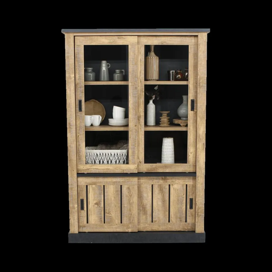 Vitrinekasten|Ygo Glaskast KAMIEL Industrial Oak