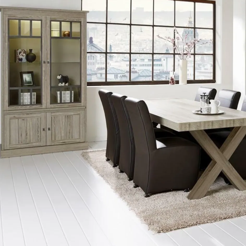 Vitrinekasten|Ygo Vitrinekast COTTON Kristal Eik Licht Bruin