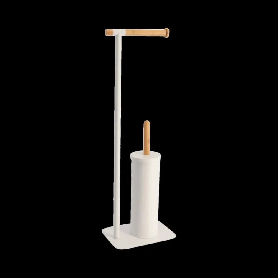 Wastafelaccessoires|Ygo WC-borstel/Pap.Houder ATHOR Bam./Met. Wit