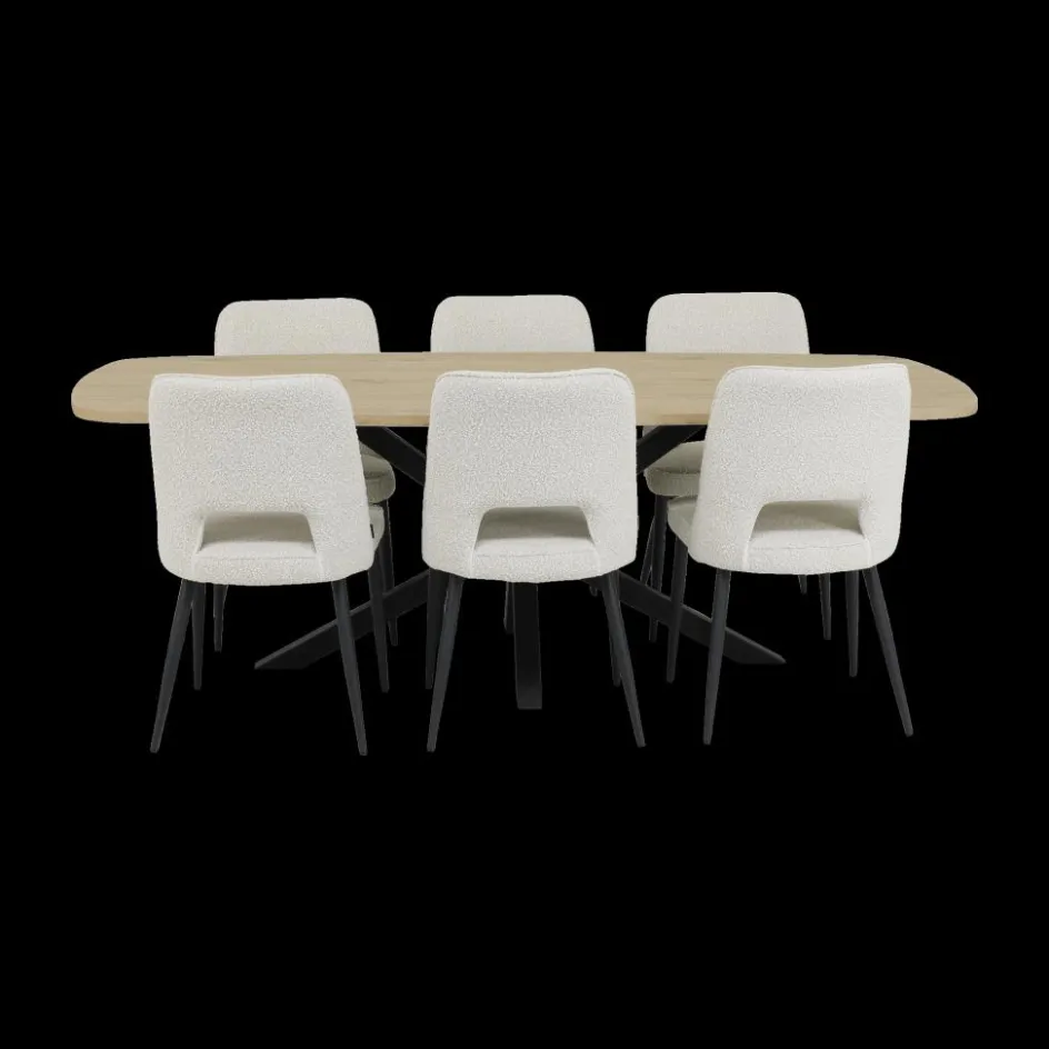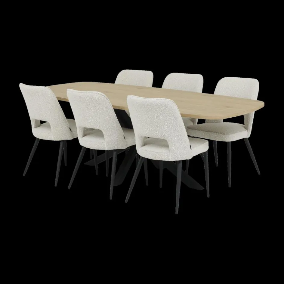 Woon- En Eetkamers|Ygo Eetkamer JAKARTA: Dressoir + Barkast smal + Tafel 225×100 + 4x stoelen ALICIA Touch Pearl