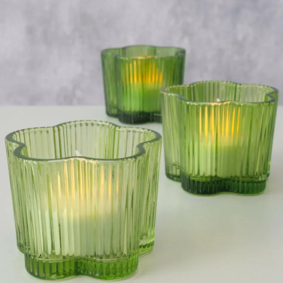 Woondecoratie|Ygo TL-Houder FIHONA Bloemvorm Glas Groen Ass.